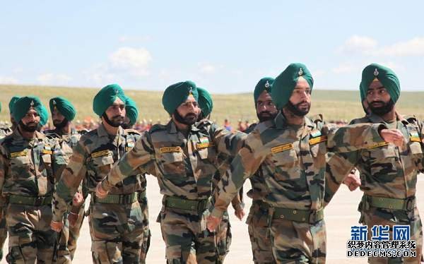• 资料图:11年7月31日,在蒙古首都乌兰巴托,参加“可汗探索”军演的印度士兵列队前进,接受检阅。新华社记者黄龙杰摄