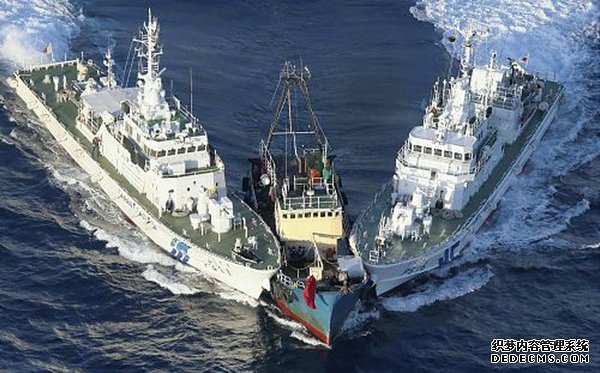 • 资料图:日本海上保安厅舰船夹击中国保钓船。