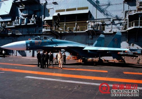 资料图:外媒称歼-15仿制俄军苏-33舰载战斗机。 资料图:俄军苏-33离舰起飞瞬间。