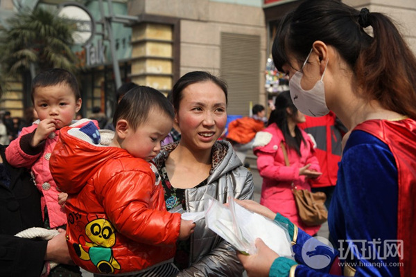 华都微公益女超人沿街送口罩(1)(3)