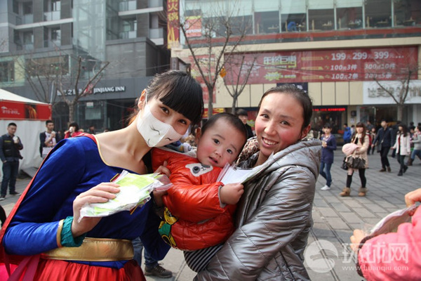 华都微公益女超人沿街送口罩(1)(5)