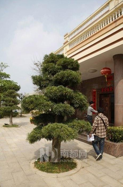 钟向阳将南都记者带入别墅小院内参观。别墅院内植物也被指价值达千万元,南都记者看到,院内有荔枝、龙眼、棕榈树等树种外,显得名贵的有两棵罗汉松。钟向阳说,罗汉松为生意拍档所送,价格贵些,但也就几万元。