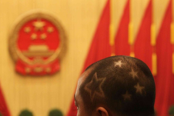 记者头剃“PM2.5”采访两会 4年4换发型(1)(6)