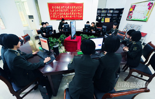 国防部网站:成都军区某通信团“模范话务连”官兵个个都是党创新理论的传播者、实践者。连队里的每一串小风铃、每一张小卡片、每一个小节目甚至每一次小活动,都打上了创新理论的烙印。青春飞扬、活力四射的女兵们幸福地告诉你:沐浴党的创新理论阳光,我们茁壮成长!