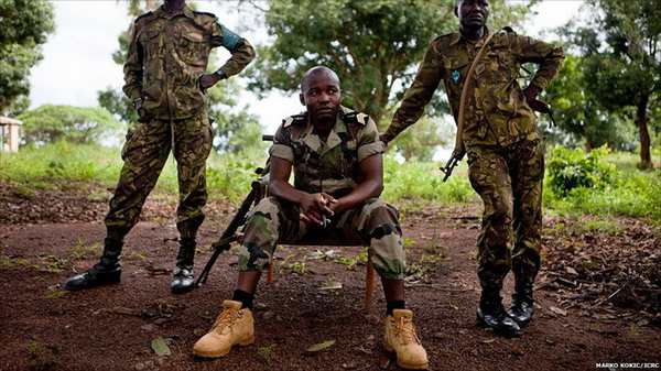 Billy Sallet(中间)是驻扎在中非共和国奥博小镇的一名军官,他所在的部队在此是为保护奥博和周围村庄,抵抗来自乌干达反政府武装上帝抵抗军的骚扰。