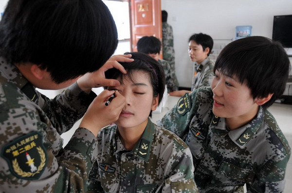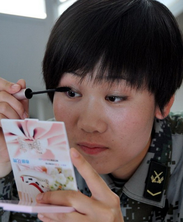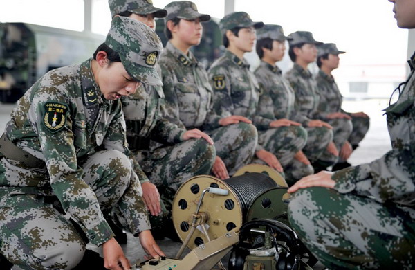 刚刚完成装备保养的女兵们。