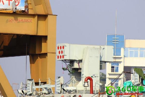 【环球网综合报报道】近日,有网友拍摄到停靠在国内某造船厂的一艘国产新型护卫舰的部分细节。从照片中看,该艘轻型护卫舰上安装了一门与美国战舰“海拉姆”防空系统类似的防空武器。有分析称,该艘护卫舰是我国最新型的056型护卫舰,而本次曝光的这款近距离防空武器很有可能是国产的HHQ-10型防空系统。据悉,056型护卫舰在我国南北多个船厂同时建造,至少已经有4艘完工下水,同时还有多艘正在快速建造。未来该型护卫舰将在我国近海防御体系中担任重要角色。